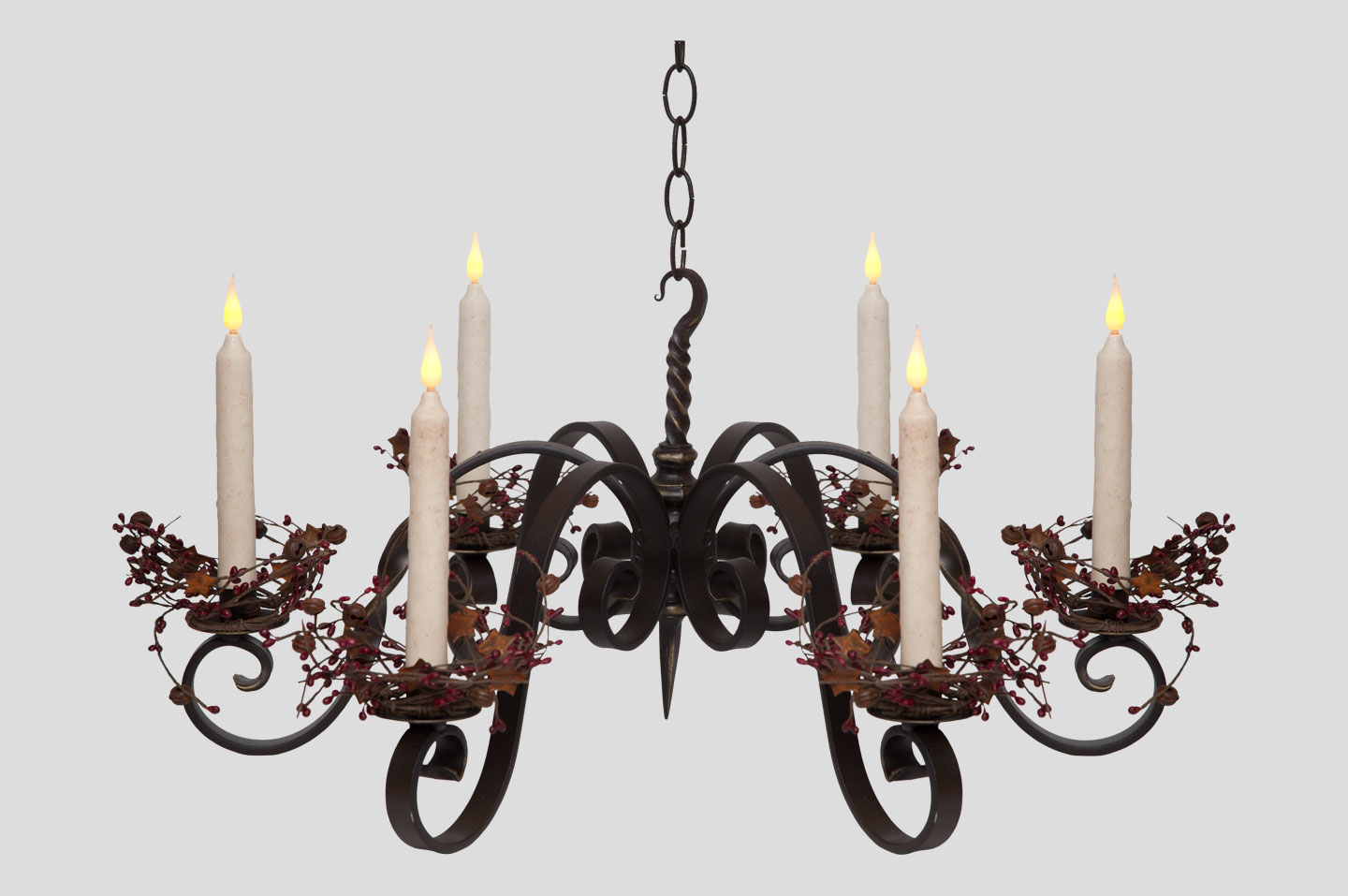 - Candle decor includes Berry Rings and Wreaths.
